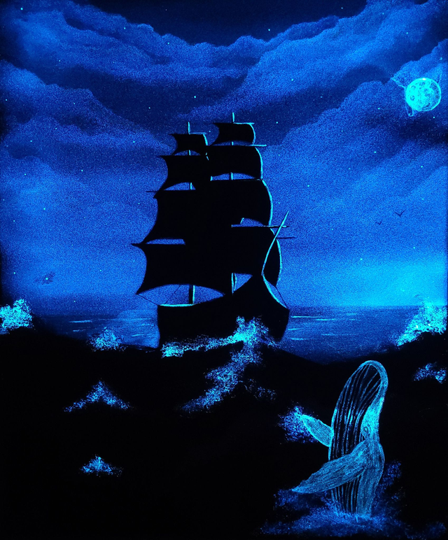 - Peinture acrylique et peinture phosphorescente sur toile en coton