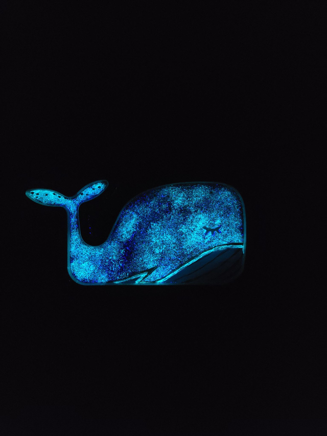 - Peinture acrylique et peinture phosphorescente sur bois de hêtre découpé, finition résine époxy